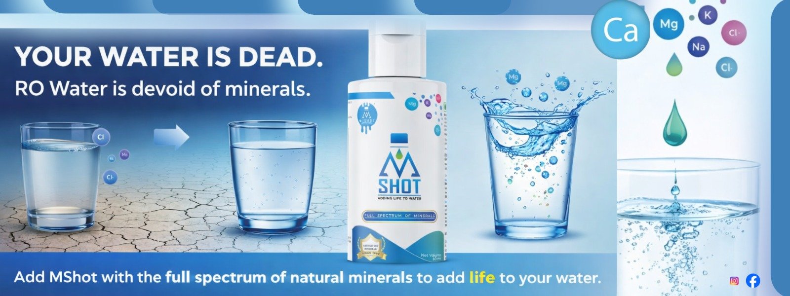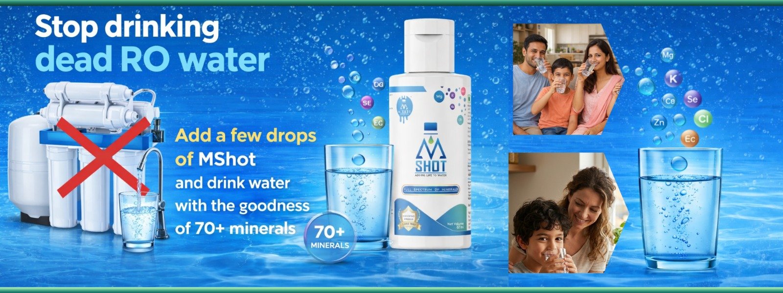M-Shot minerals are in ionic form — absorbed directly by your cells, unlike rock-form minerals or ceramic RO cartridges.