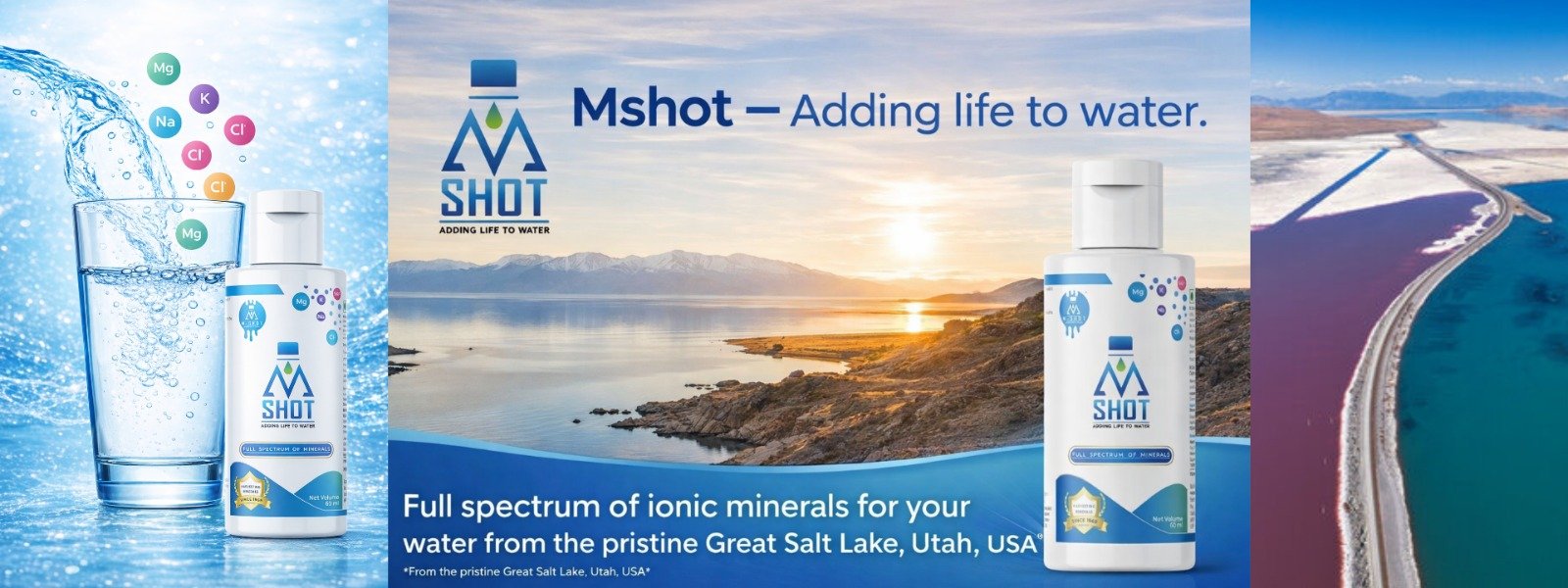 M-Shot contains over 70 naturally occurring ionic trace minerals sourced from the Great Salt Lake, Utah — one of Earth's richest mineral reservoirs. Bioavailable, pure, and completely free from artificial additives.